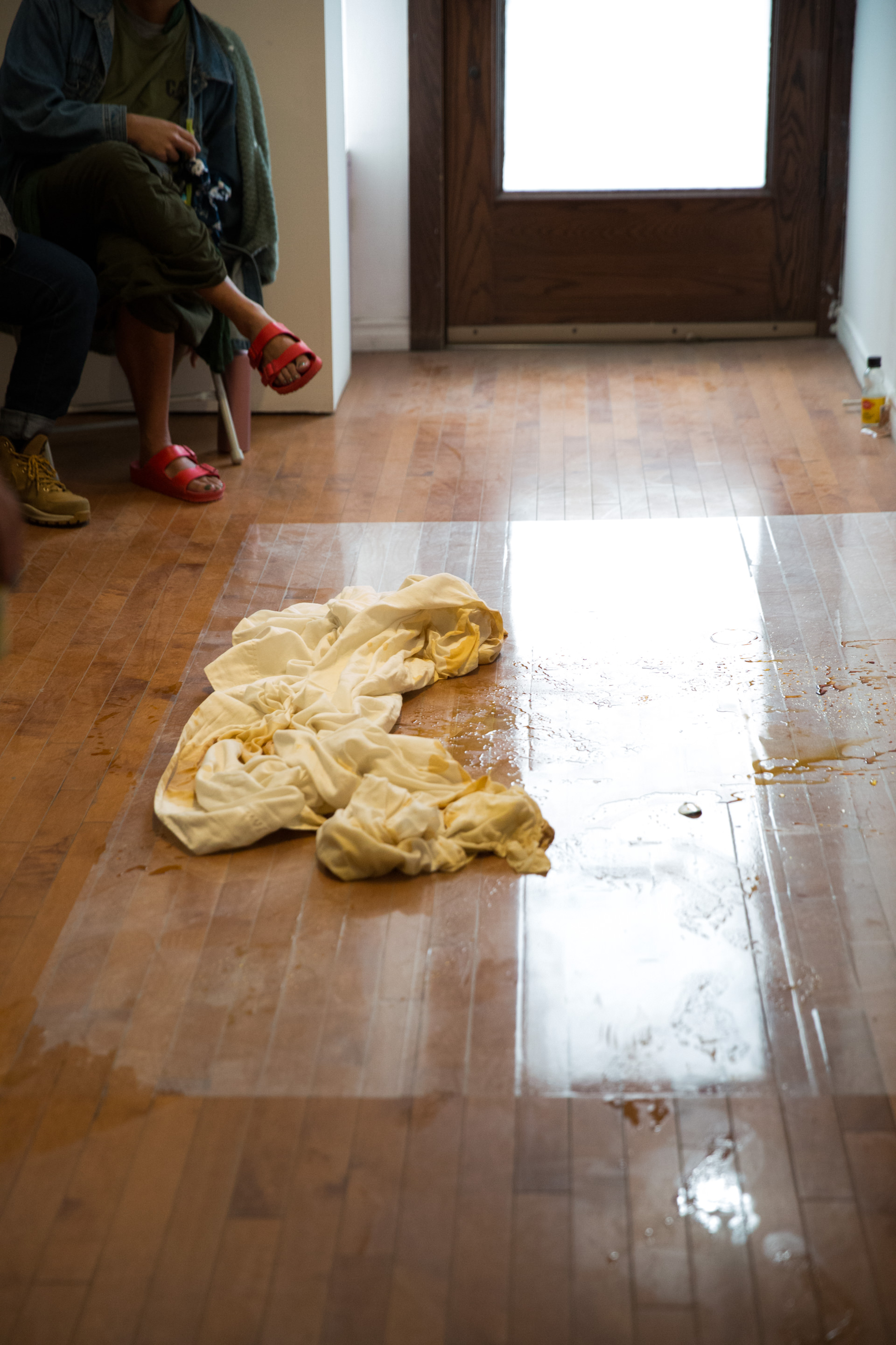 As part of Andy’s work The scent of my cleansing prepares my own conclusion. presented in Dan Cardinal McCartney’s curated group exhibition Process: Presence and Resurgence at Stride Gallery, Andy will perform as their artist persona No-Body:) in nude, bathing themselves and their copper intaglio plate in soy sauce. Remaining evidence of the performance will include the emptied bottles of soy sauce, the resulting puddle on the floor, and a simple linen cloth – remnants of a body activated in the space, the exchange of parts of the body becoming part of the space, and parts of the space becoming part of the body. As mentioned in Sara Ahmed’s Queer Grief, “Each of us, in being shaped by others, carries with us ‘impressions’ of those others.”