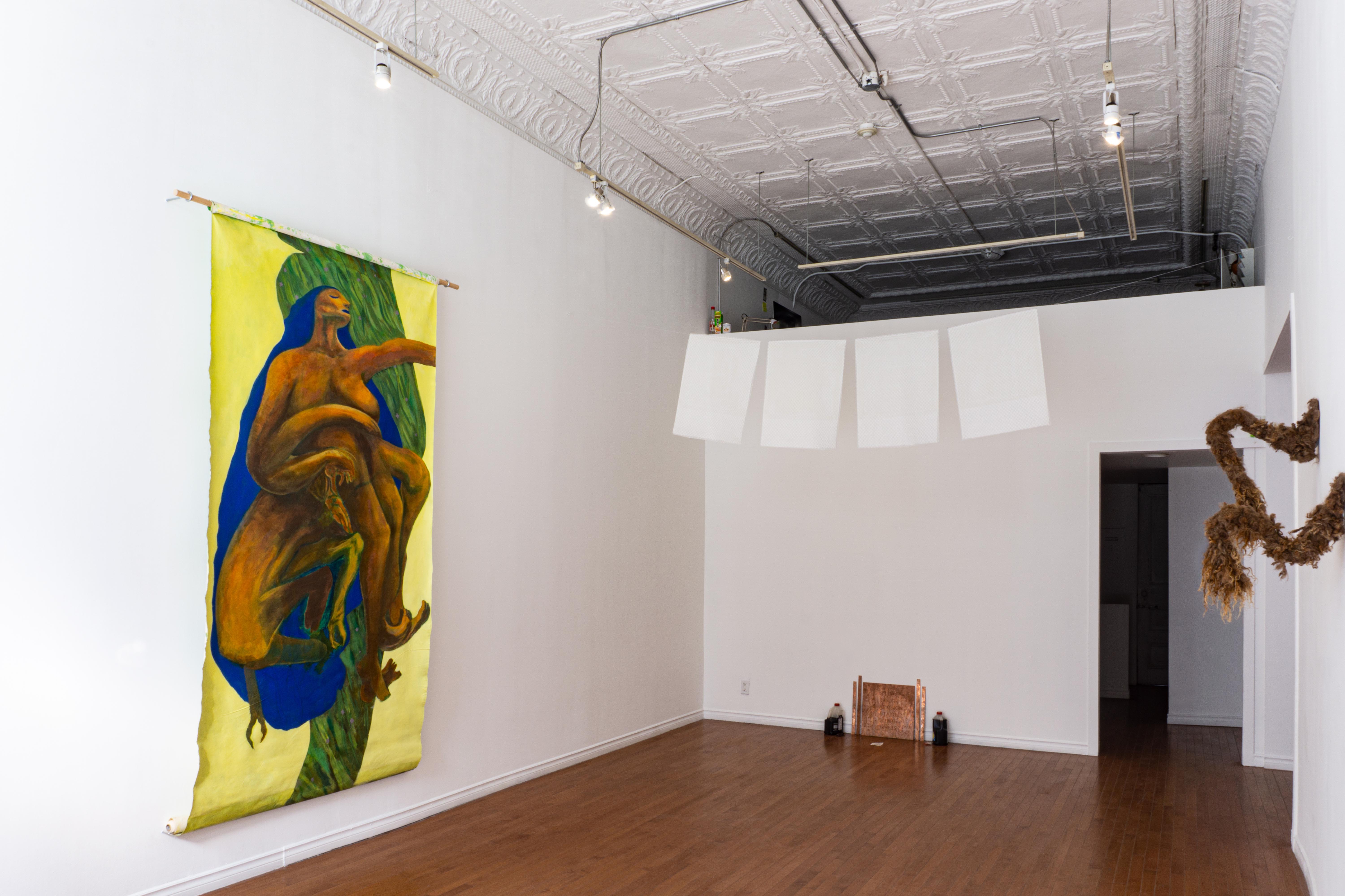 Curated by Dan Cardinal McCartney, invited artists inhabit the exhibition theme of rigorous, process-based ways of making art as a metaphor for trans liminality. Exhibiting artists transforming Stride’s Main Gallery space include Solana Ayida Morante, Andy Rubio, Morgan Possberg Denne, and Levin Ifko. Each individual artist’s mediums intersect through process, spanning across durational performance, painting, quilting, taxidermy, and installation. Taking place during the springtime season, Process: Presence and Resurgence also explores the fluidity of time, rituals, and life cycles inherent to trans futures.