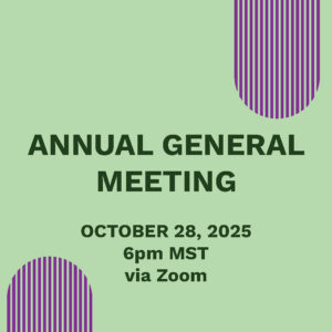 - Our Annual General Meeting will be hosted on Tuesday, October 28th, 2025 at 6 pm MST, via Zoom. When applying, please be sure you will be available to meet this day.